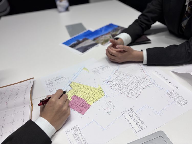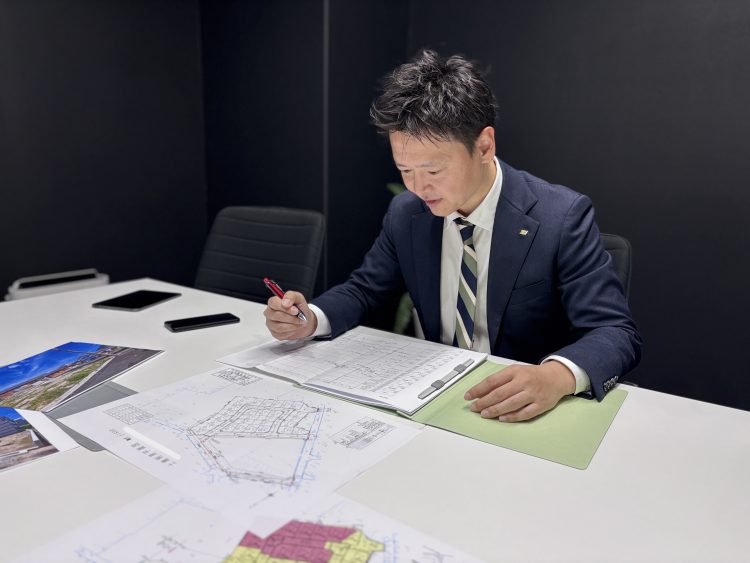 具体的には、役所調査や現地確認をもとに、造成計画(切土・盛土・排水・擁壁)を立案し、宅地の区割りや道路計画を設計。その上で、建物のボリュームプランを作成し、事業としての成立性を検証していきます。また、開発許可や各種行政協議にも関与しながら、施工会社や外部パートナーと連携し、コスト・品質・工程を管理します。